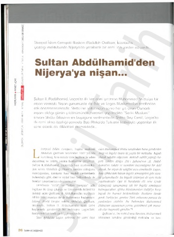 IM Sultan II. Abdülhamid, Lagos'ta ilk kez cami yaptıran Muhammed Shitta'ya bir